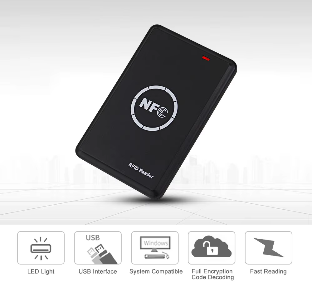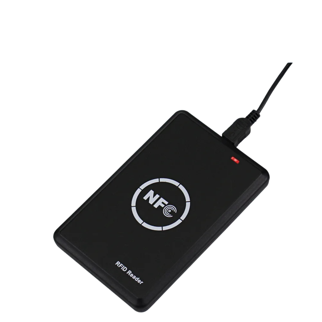 A driver-free USB RFID/NFC reader/writer programmer that supports both 13.56MHz and 125KHz frequencies.