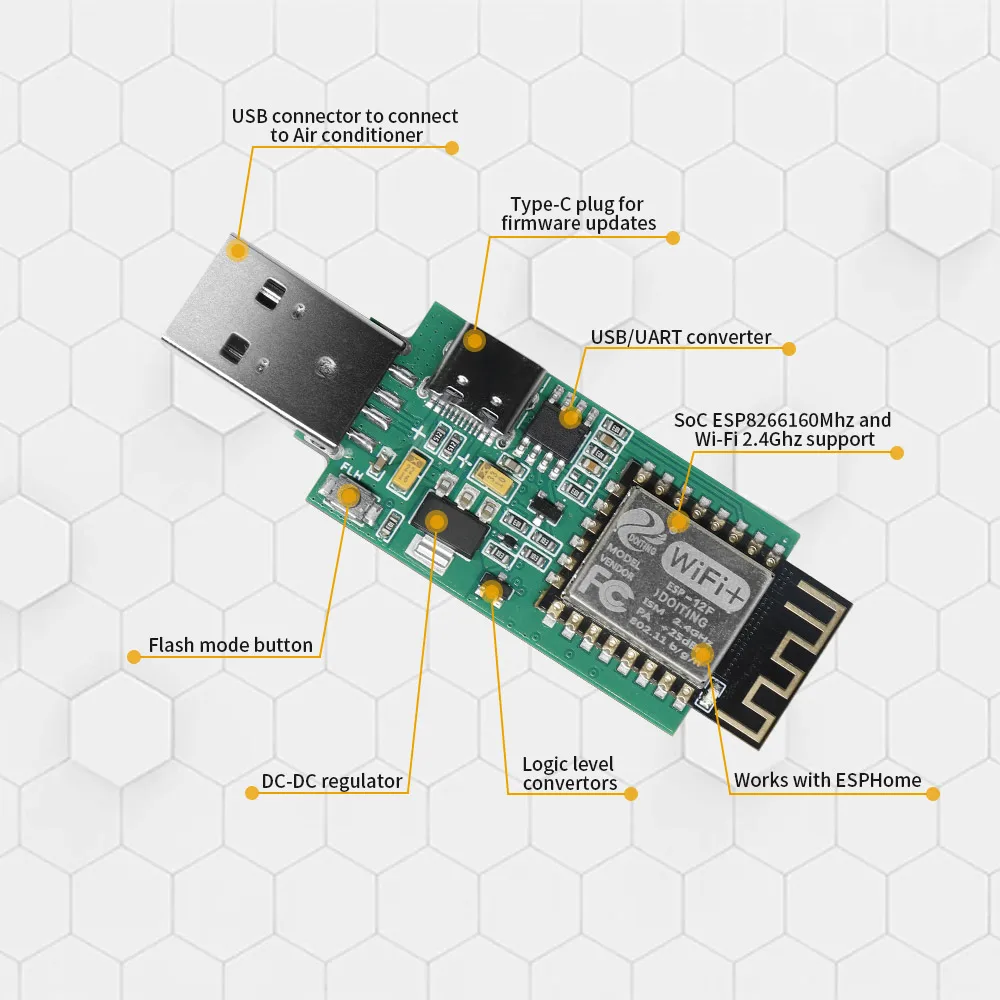 The SMLIGHT SLWF-01 Pro is a DIY ESPHome dongle designed to integrate Midea-based climate devices into ESPHome-compatible smart home systems.